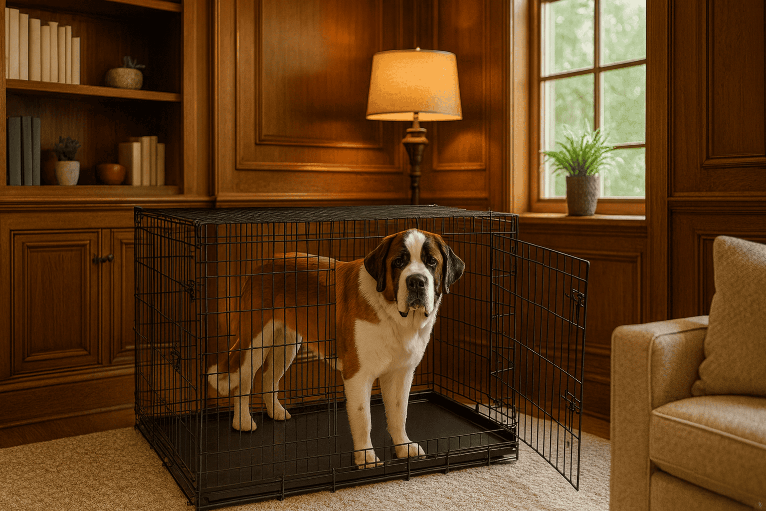 Our XXL crate ensures comfort for your gentle giant.
