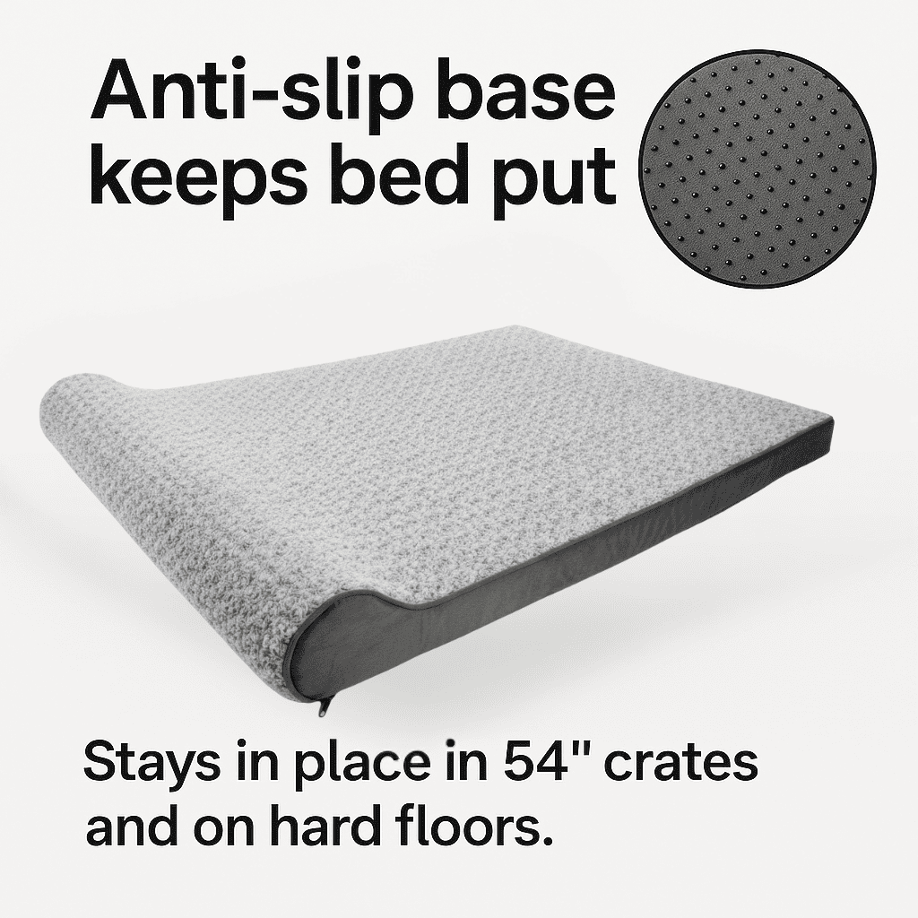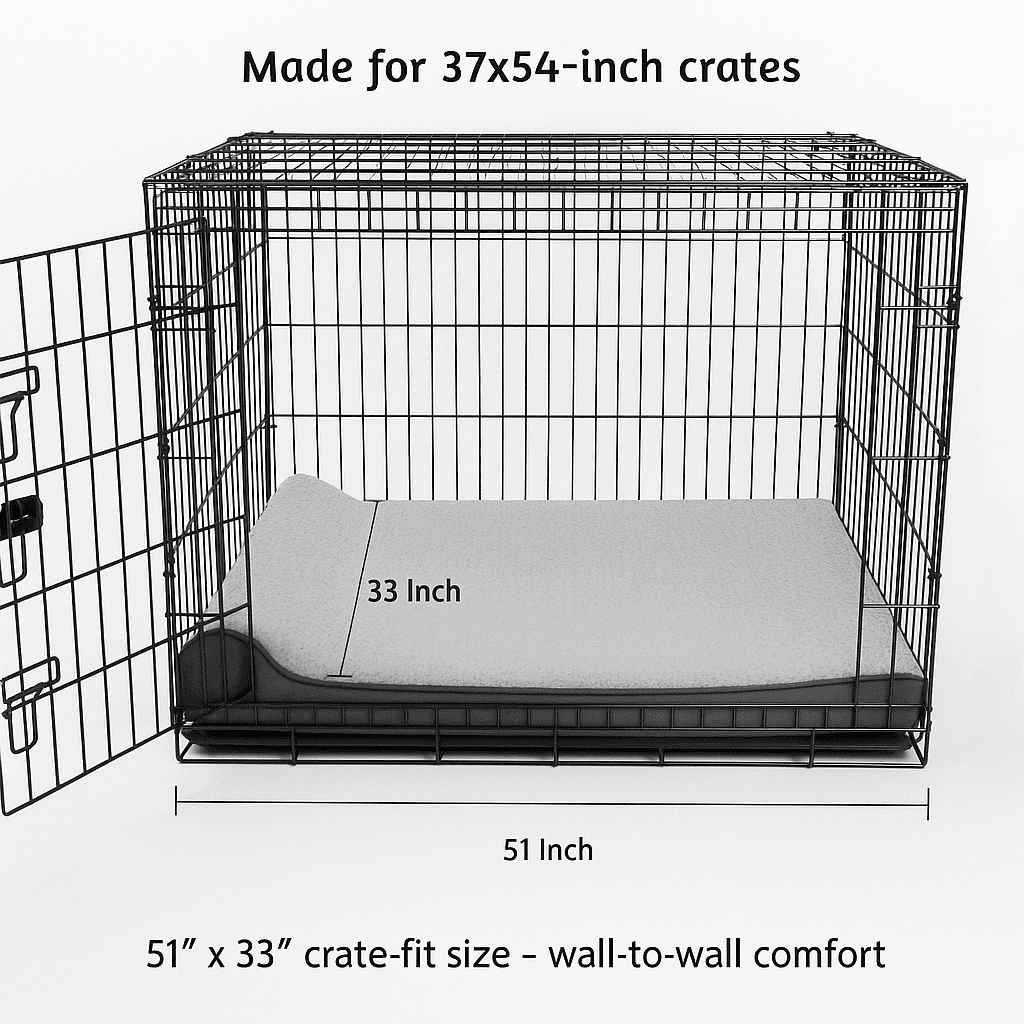 - DESIGNED FOR 54-INCH DOG CRATES – FINALLY A PERFECT FIT – Precision-sized at 51″×33″ to maximize floor space in standard 54″ crates (fits 37×54 dimensions). Unlike universal beds that leave gaps or slide around, this crate bed provides wall-to-wall comfort. Slides easily through crate door. Also works beautifully as stand-alone bed for large dogs 90–150 pounds.