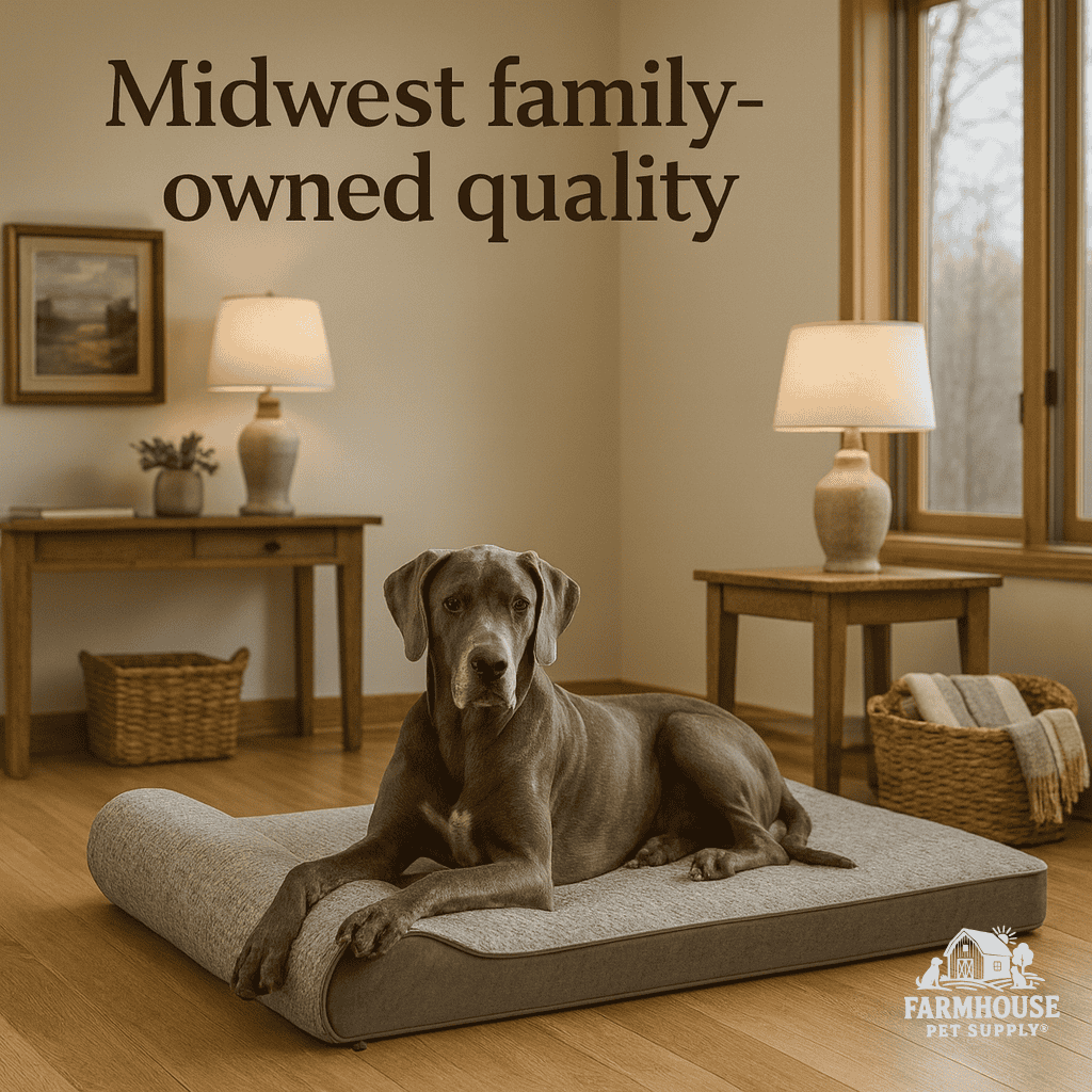 - MIDWEST FAMILY-OWNED QUALITY WITH 30-DAY GUARANTEE – Premium quilted fabric resists scratching and nesting. Reinforced edges and heavy-duty zipper built to last. Arrives vacuum-compressed (allow 24–48 hours to expand). Designed in USA by Farmhouse Pet Supply to pair perfectly with our 54″ heavy duty crates.