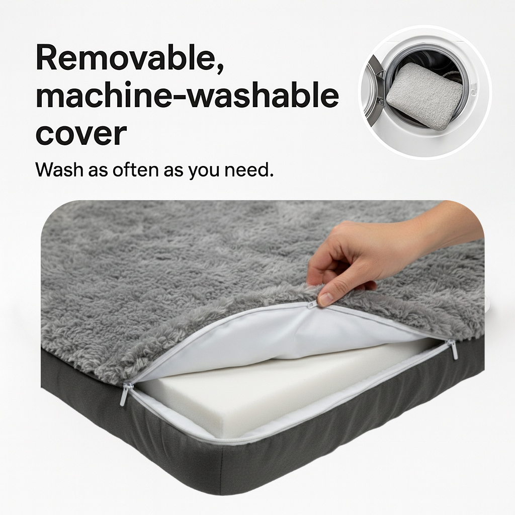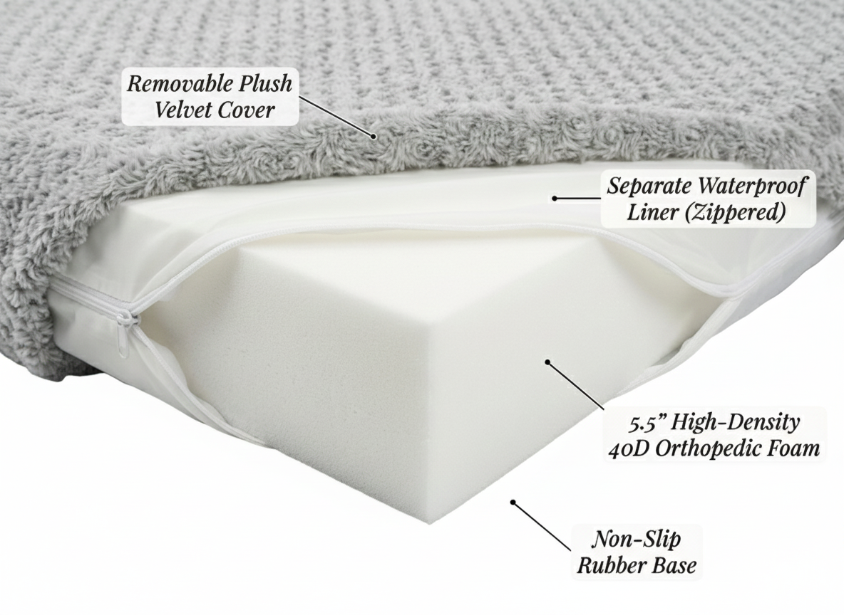 - TRULY WASHABLE WITH LONG-LASTING WATERPROOF PROTECTION – Removable lambskin velvet cover machine washes weekly if needed. Our separate waterproof liner (not a spray coating) continuously protects the memory foam from accidents, drool, and moisture. While other beds’ waterproofing cracks and peels, ours stays effective through countless washes.